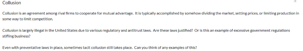 Solved Collusion Collusion Is An Agreement Among Rival Fi