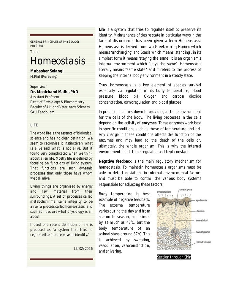 Homeostasts Final Draft Ses08106 Napier Studocu