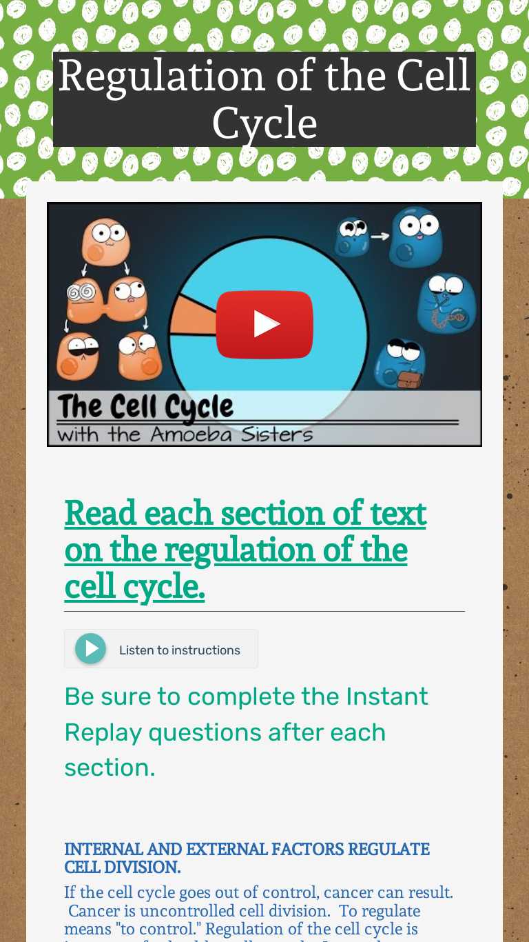 Cell Cycle Control Game Worksheet Pdf Cell Cycle Control Game