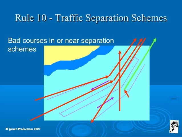 Rule 10 of the collision regulations deals with the behaviour of vessels in or near traffic separation schemes adopted by the organization. The following pdf documents are courtesy of the mca and are msn 1781 and amendments otherwise known as the merchant shipping distress signals prevention of collisions regulations 1996 amended in november 2003.