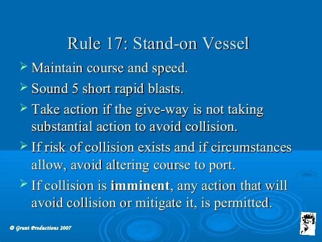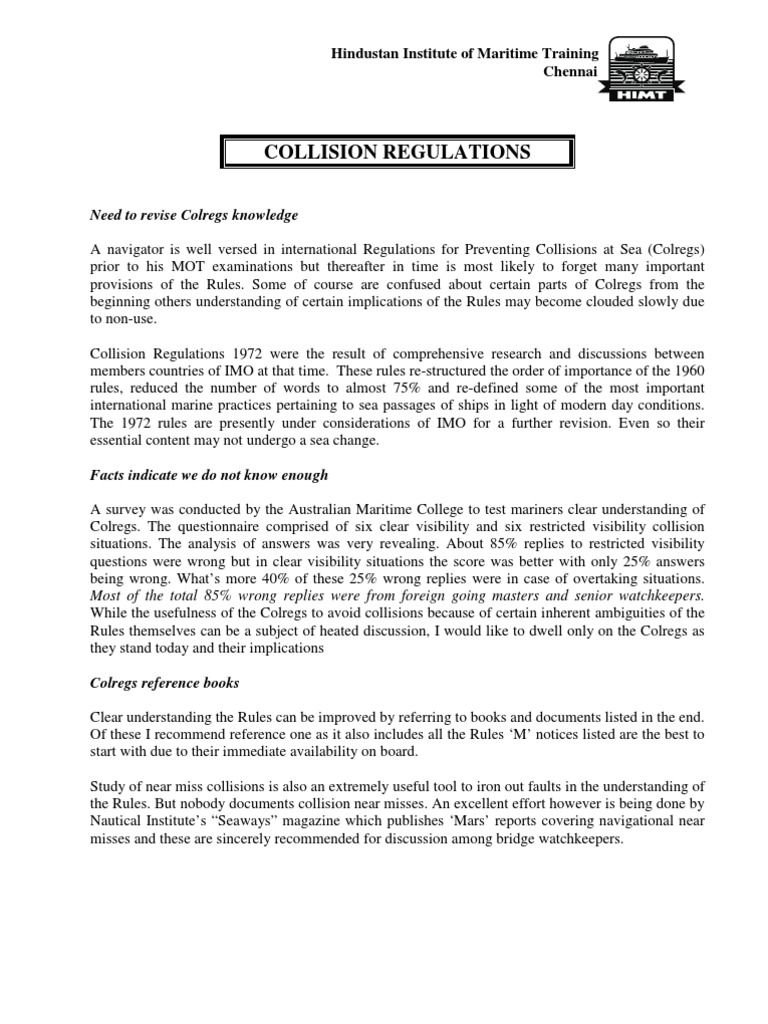 The rules commonly called 72 colregs are part of the convention and vessels flying the flags of states. Any action taken to avoid collision shall if the circumstances of the case admit be positive made in ample time and with due regard to the observance of good seamanship. Colregs international regulations for preventing collisions at se a articles of the convention on the international regulations for preventing collisions at sea 1972 article ii signature ratification acceptance approval and accession article ii signature ratification acceptance approval and accession 1.