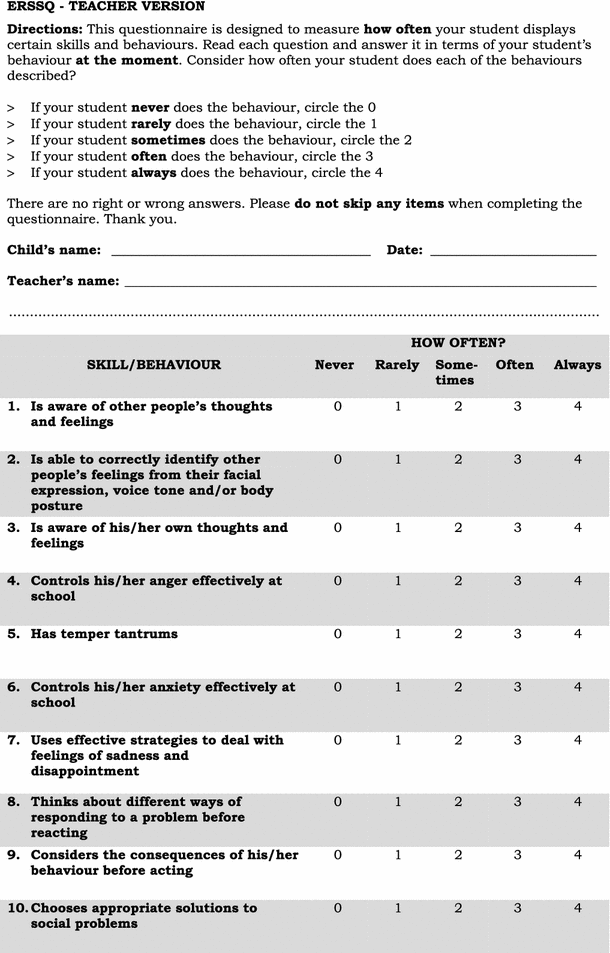 Emotion Regulation Checklist Erc Preliminary Studies Of Cross