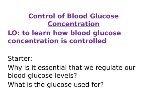 Controlling Blood Glucose Levels Teaching Resources